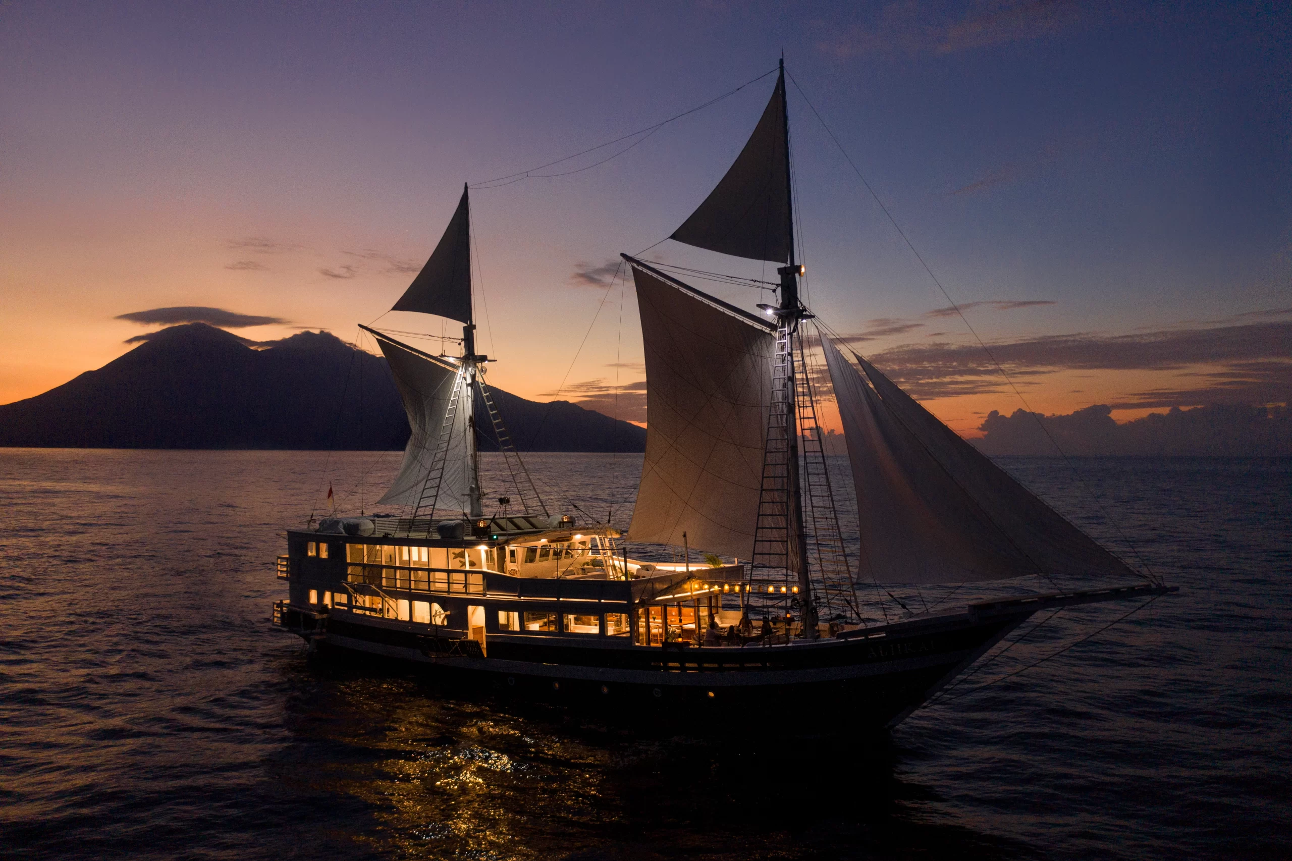 Alilkai Liveaboard sails up and bow