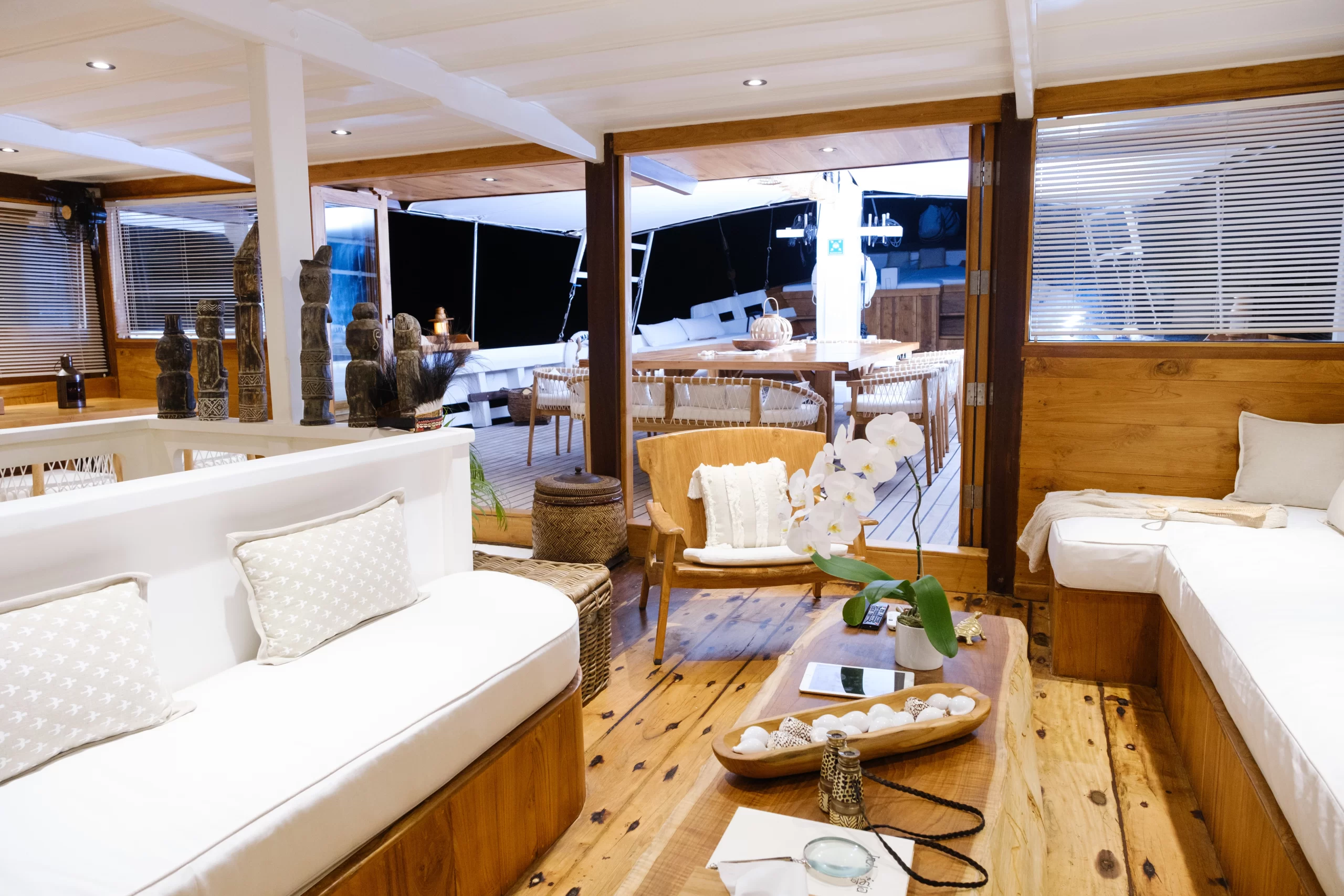 Aliikai is a modern classic—an exquisitely renovated Phinisi yacht that fuses traditional Sulawesi boatbuilding with refined interiors and laid-back sophistication. With seven spacious cabins, open-plan social areas, and a seasoned 14-person crew, Aliikai is made for those who want the freedom of a private yacht with the soul of a handcrafted vessel.