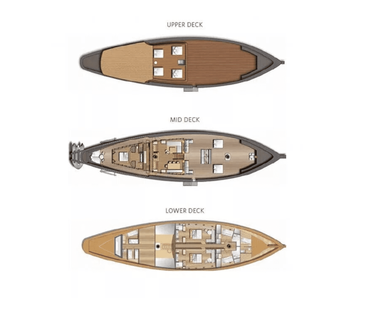 Choose from three to five cabins depending on your group size. Every space aboard Amandira is steeped in Aman’s aesthetic: minimalist elegance, natural textures, and absolute comfort.