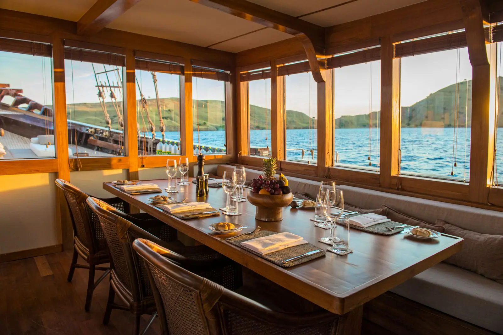 The interior palette is quietly indulgent—Asian minimalism with European flair. Seven spacious suites, including a master cabin and six guest staterooms (four doubles, two twins), each feature air-conditioning, ensuite bathrooms, plush lounge areas, and ambient lighting. Thoughtful touches like HD TVs, curated film libraries, and iPod docks round out the creature comforts, though frankly, the view tends to steal the show.