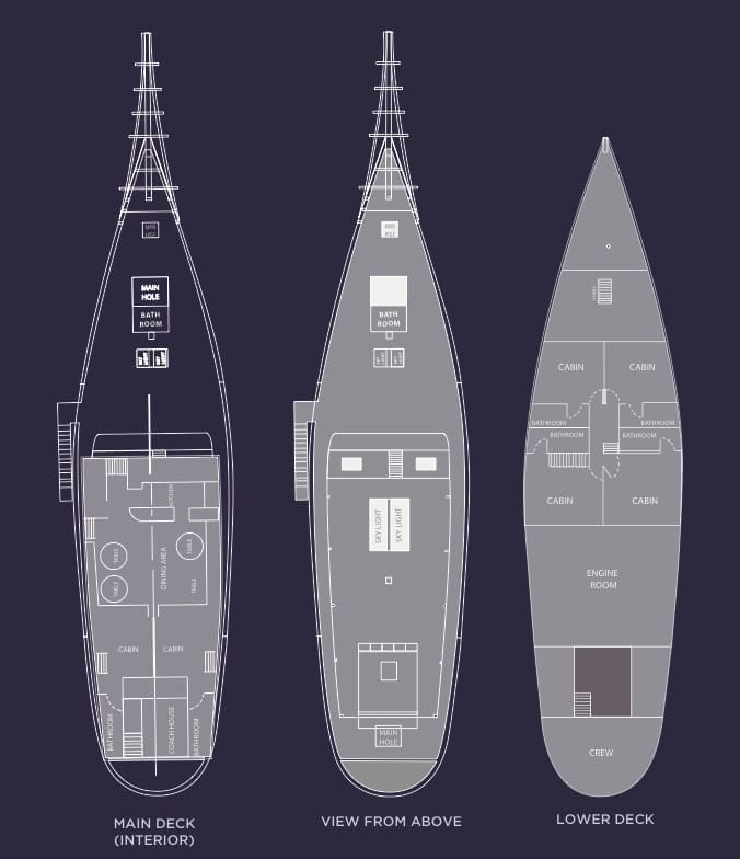 Hand-built from tropical hardwoods by the renowned Konjo craftsmen, Shakti carries the true spirit of the Phinisi — graceful under sail yet rugged enough for open-ocean exploration. Measuring 32 metres with a 7-metre beam, she cruises comfortably at 9 knots and is fully equipped for serious diving.