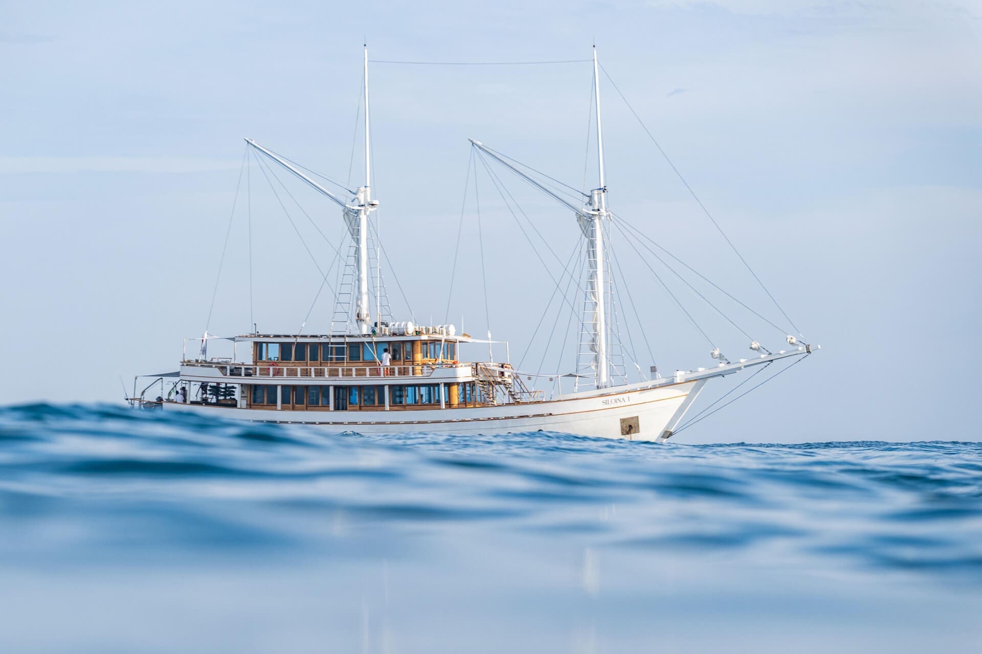 Constructed from ironwood and teak by Sulawesi’s master shipwrights, Siloina Two combines traditional craft with eco-friendly design. At 40 metres long with a 7.4 m beam, she’s large enough to feel like a boutique hotel, yet agile enough to tuck into shallow anchorages beside world-class reef passes.